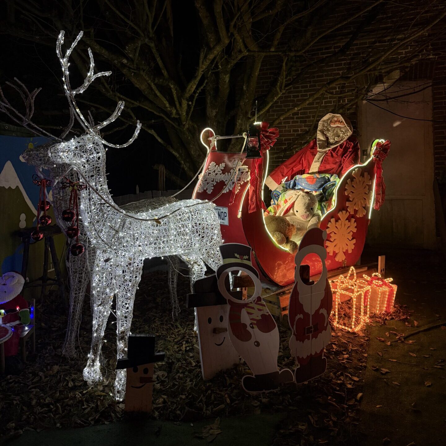 « Nous avons pas mal d’achats, mais aussi de fabrications personnelles réalisées à partir de récupération comme le traîneau du Père Noël fabriqué à partir d’une table de ping-pong, la crèche et l’atelier du Père Noël fait à partir de bois. »